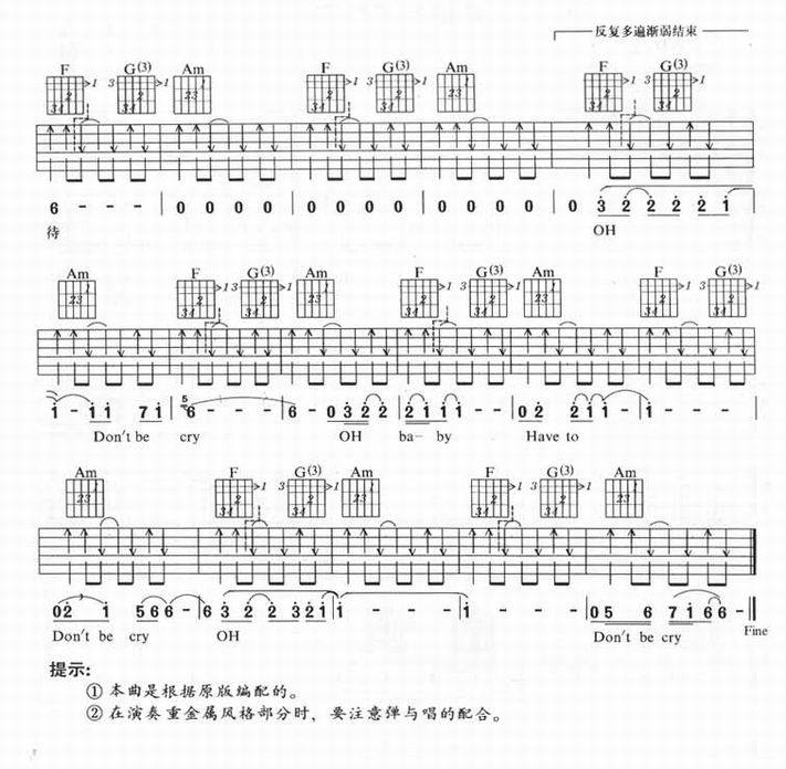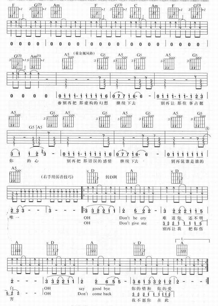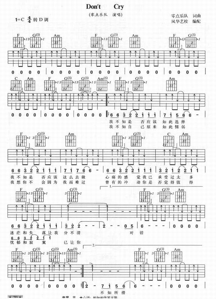 Don"t Cry-零点乐队(吉他谱 吉他曲谱 吉他六线谱 吉他歌谱 吉它谱 影视吉他谱)