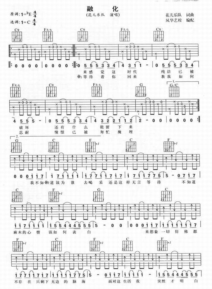 融化-花儿乐队(吉他谱 吉他曲谱 吉他六线谱 吉他歌谱 吉它谱 影视吉他谱)