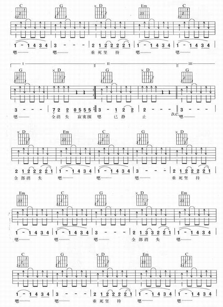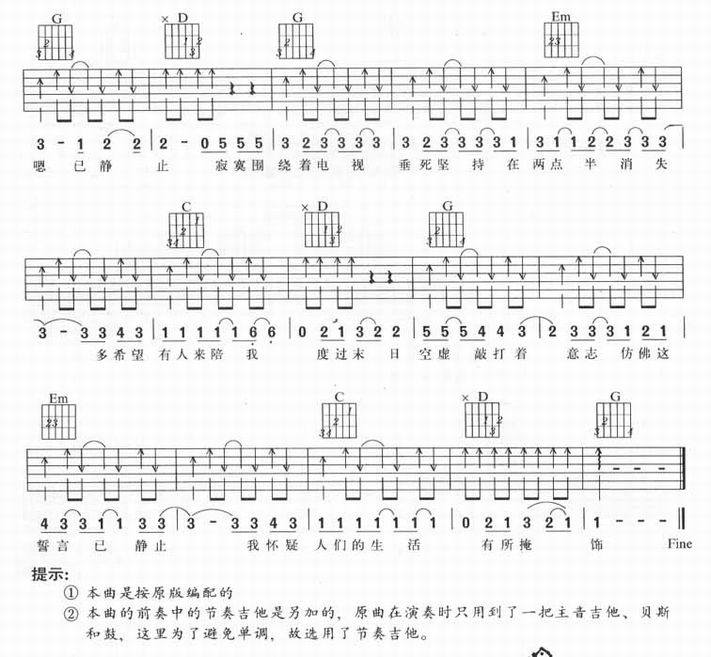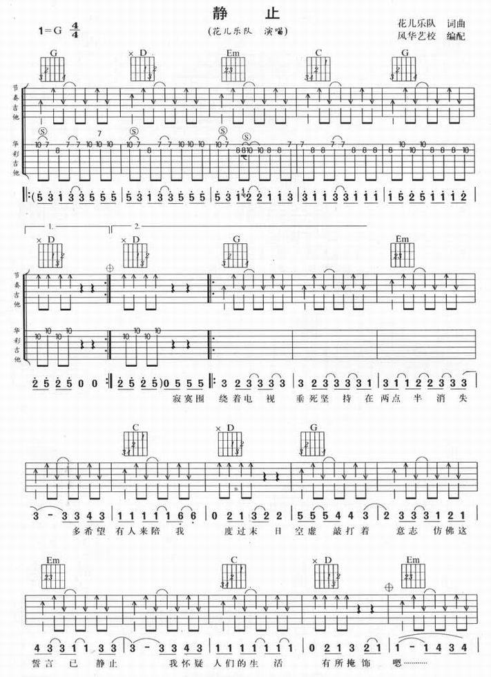 静止-花儿乐队(吉他谱 吉他曲谱 吉他六线谱 吉他歌谱 吉它谱 影视吉他谱)