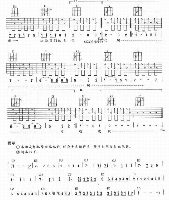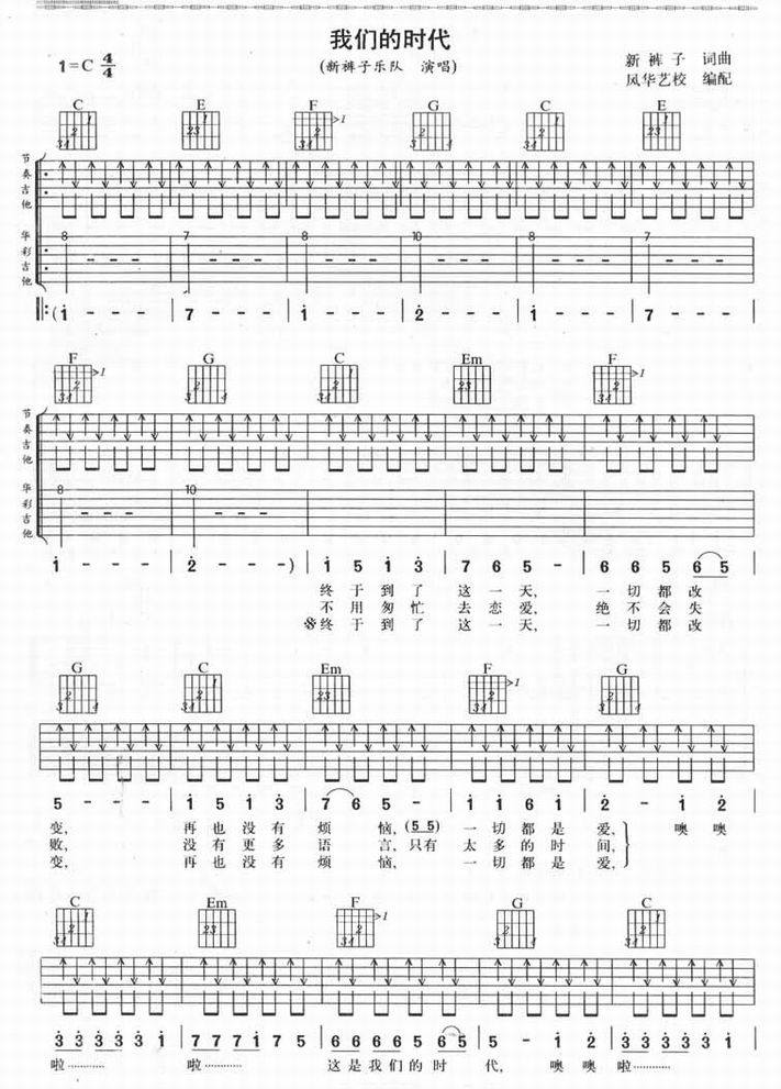 我们的时代-新裤子乐队(吉他谱 吉他曲谱 吉他六线谱 吉他歌谱 吉它谱 影视吉他谱)