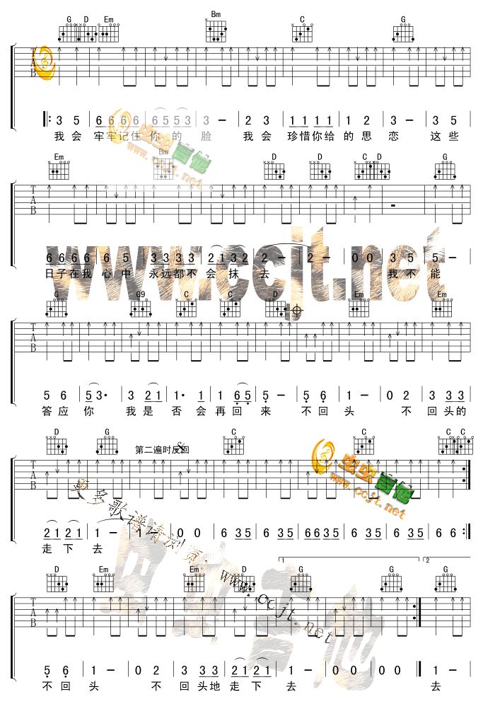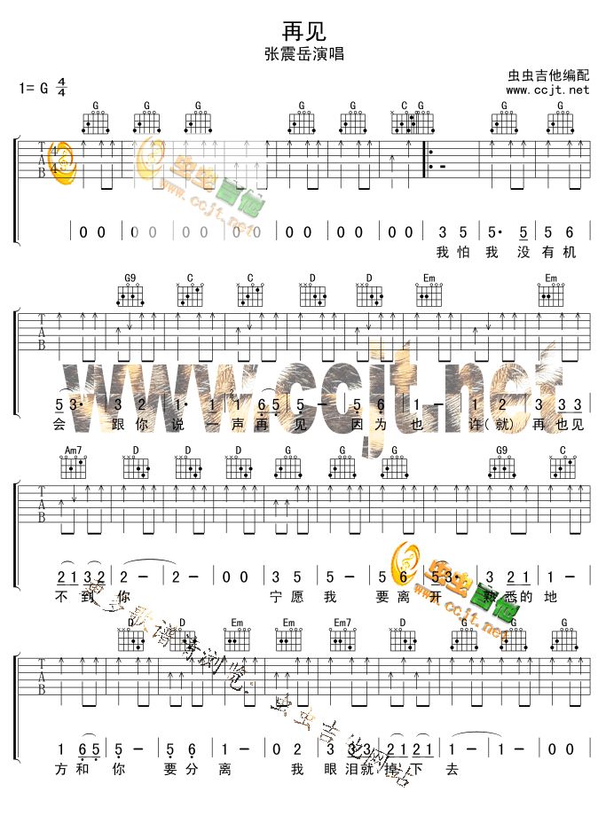 再见-张震岳(吉他谱 吉他曲谱 吉他六线谱 吉他歌谱 吉它谱 影视吉他谱)