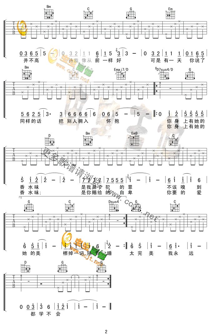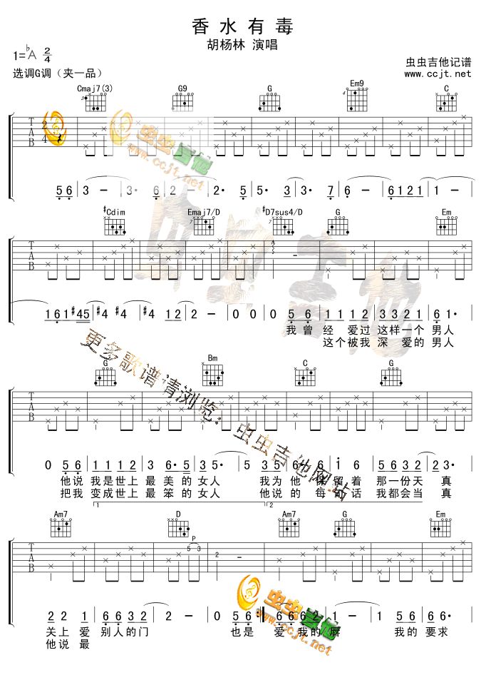 香水有毒-胡杨林(吉他谱 吉他曲谱 吉他六线谱 吉他歌谱 吉它谱 影视吉他谱)