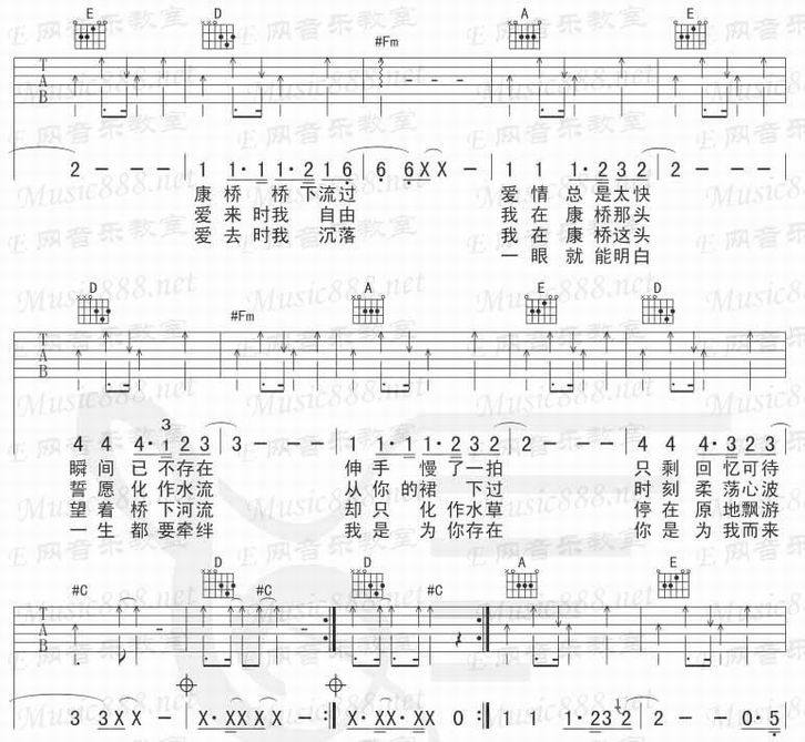 再别再别康桥-黄磊(吉他谱 吉他曲谱 吉他六线谱 吉他歌谱 吉它谱 影视吉他谱)