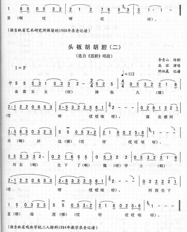 >> 头板胡胡腔《杨八郎探母》《蓝桥》选段(二人转简谱)