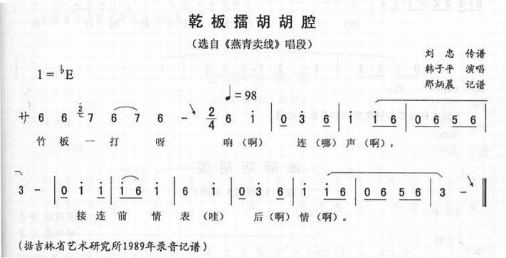 乾板擂胡胡腔《燕青卖线》唱段(二人转简谱 戏曲乐谱)