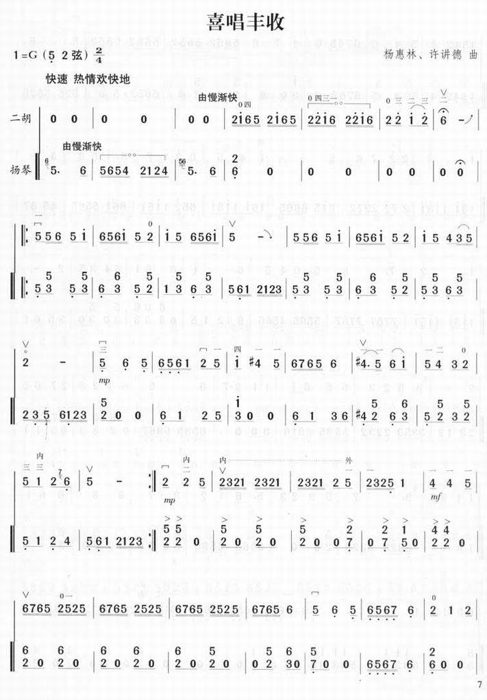 喜唱丰收-二胡(简谱 二胡曲 二胡独奏 二胡音乐 二胡曲谱)