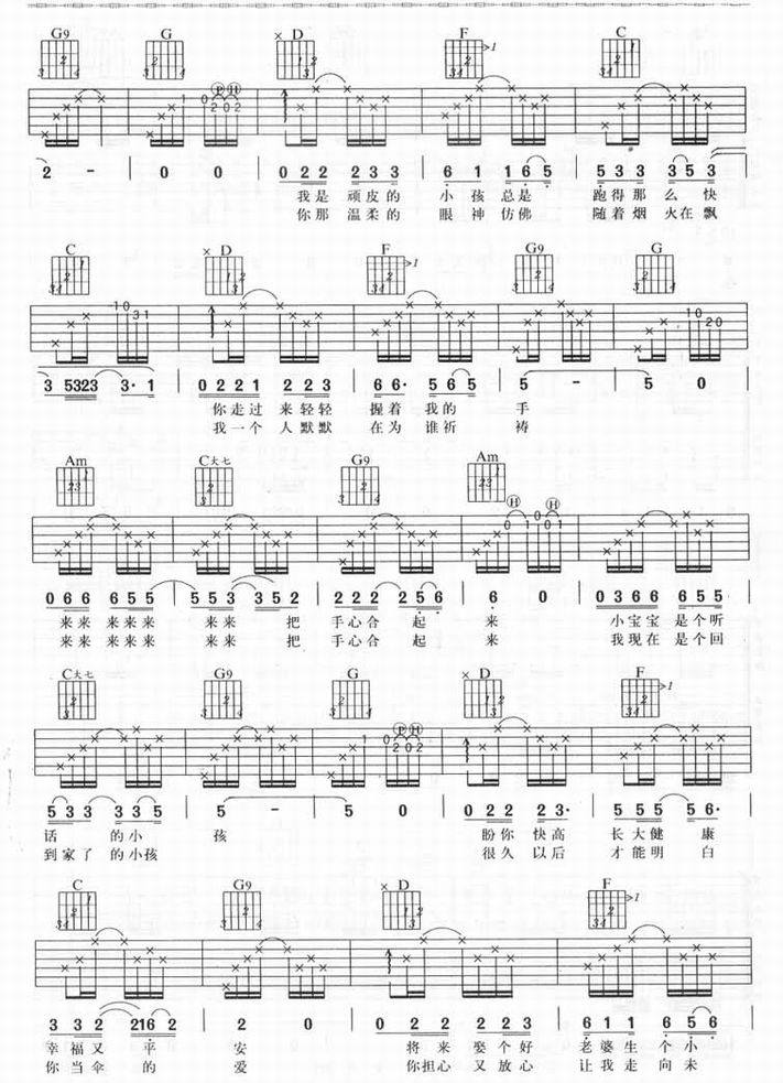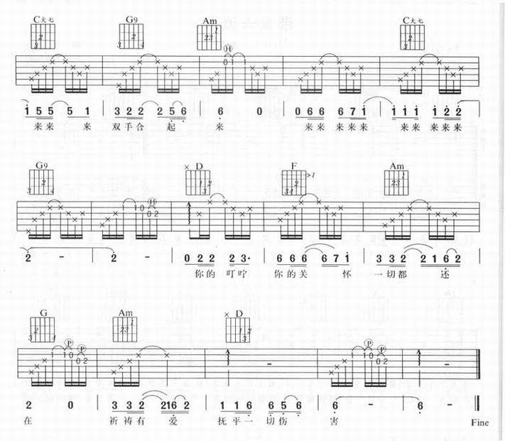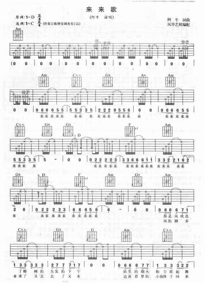 来来歌-阿牛(吉他谱 吉他曲谱 吉他六线谱 吉他歌谱 吉它谱 影视吉他谱)