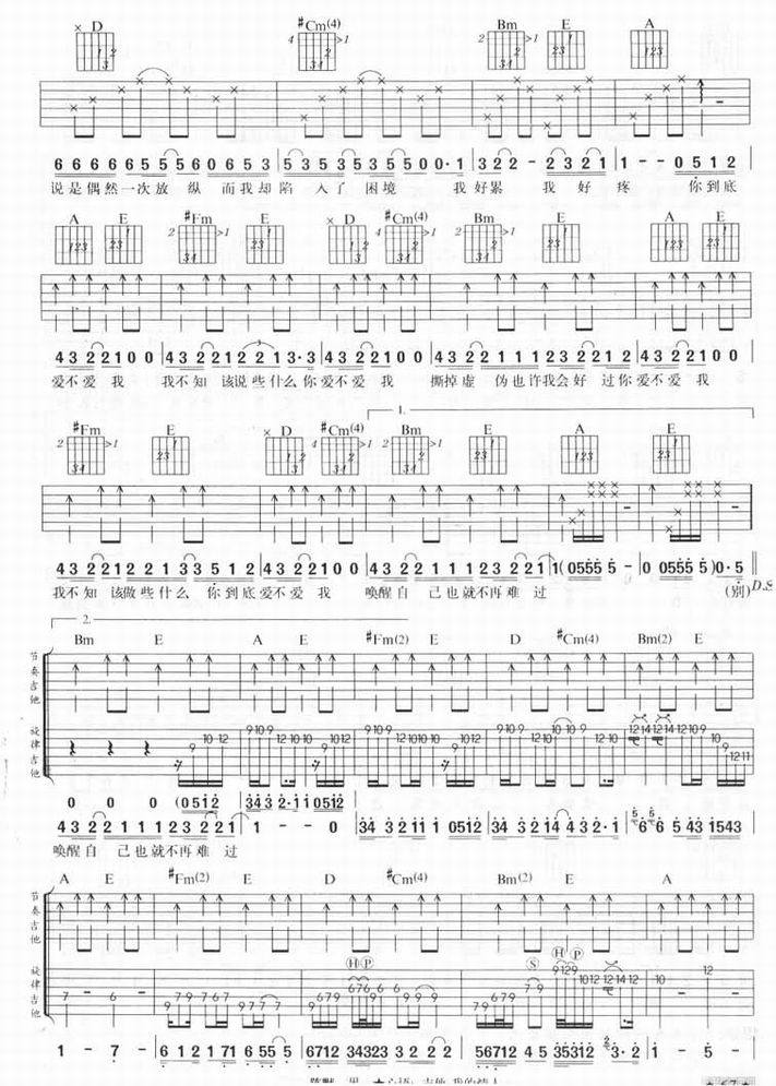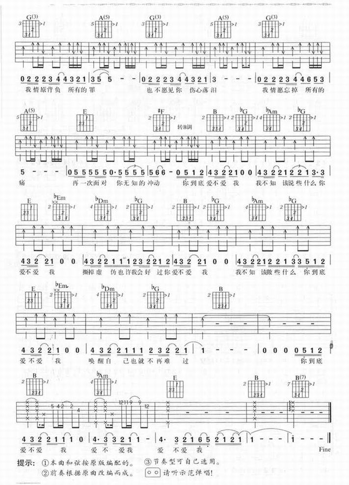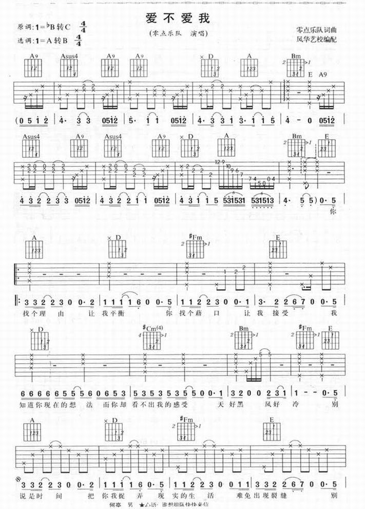 爱不爱我-零点乐队(吉他谱 吉他曲谱 吉他六线谱 吉他歌谱 吉它谱 影视吉他谱)