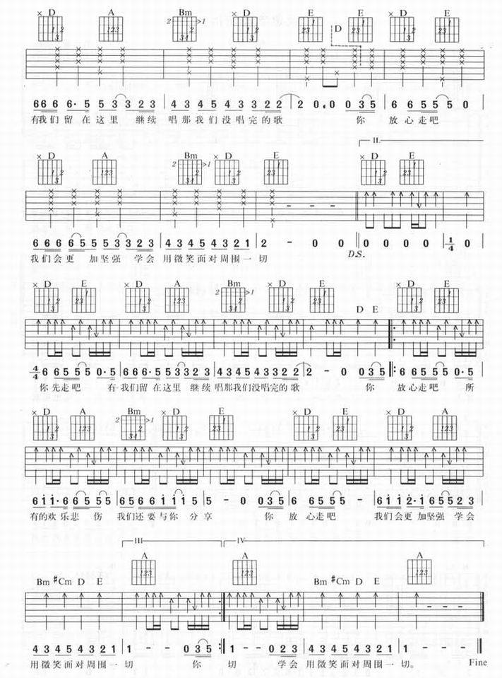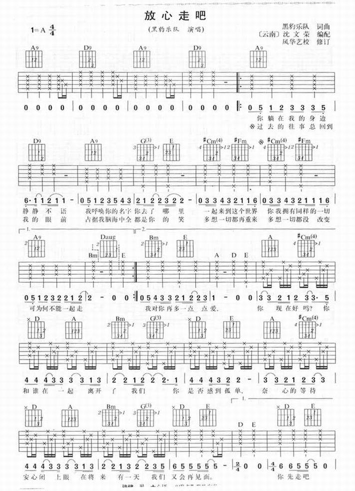 放心走吧-黑豹乐队(吉他谱 吉他曲谱 吉他六线谱 吉他歌谱 吉它谱 影视吉他谱)