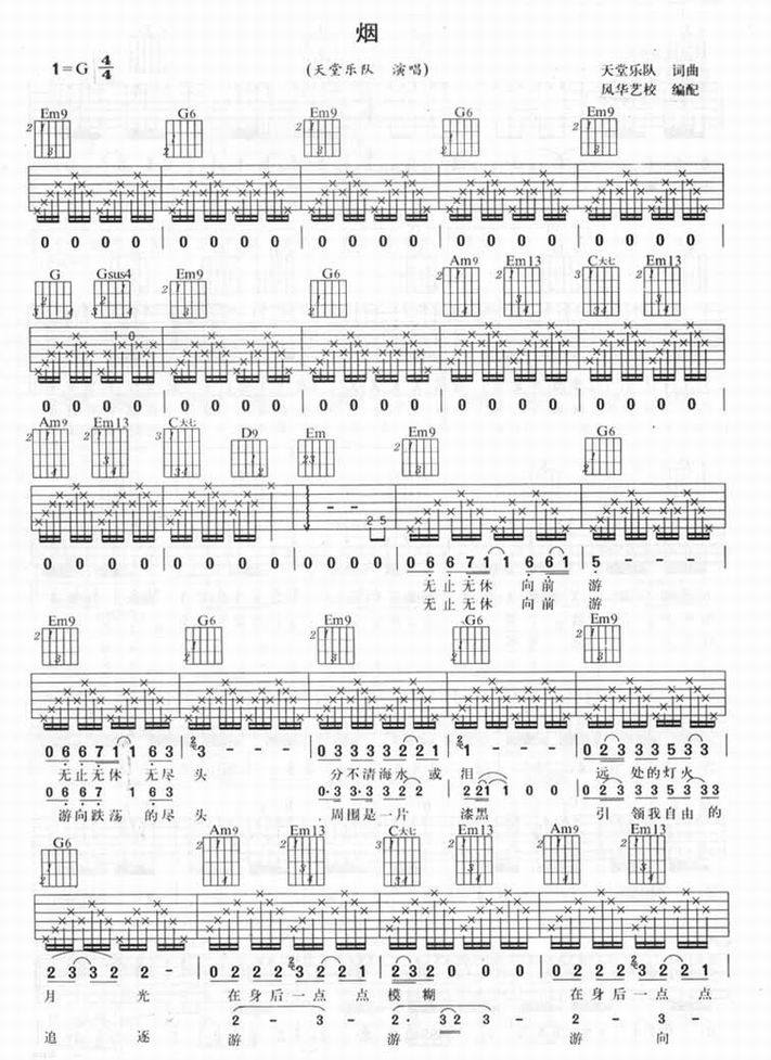 烟-天堂乐队(吉他谱 吉他曲谱 吉他六线谱 吉他歌谱 吉它谱 影视吉他谱)