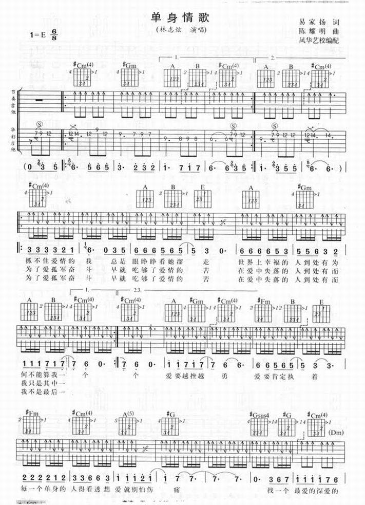 单身情歌-林志炫(吉他谱 吉他曲谱 吉他六线谱 吉他歌谱 吉它谱 影视吉他谱)