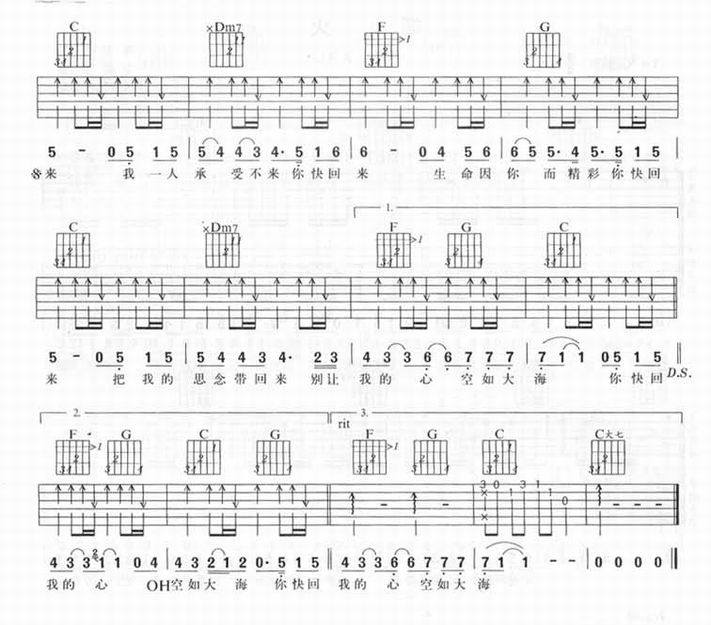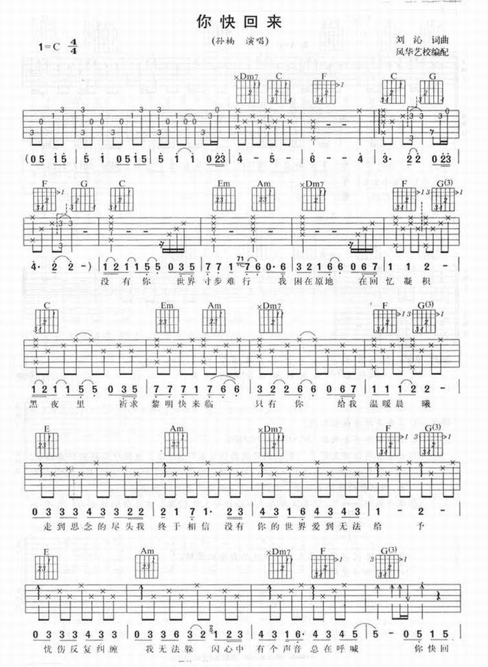 你快回来-孙楠(吉他谱 吉他曲谱 吉他六线谱 吉他歌谱 吉它谱 影视吉他谱)