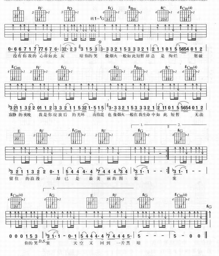 烟火-满江(吉他谱 吉他曲谱 吉他六线谱 吉他歌谱 吉它谱 影视吉他谱)
