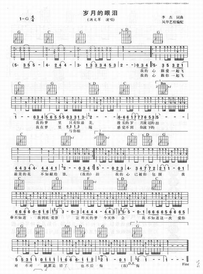 岁月的眼泪-满文军(吉他谱 吉他曲谱 吉他六线谱 吉他歌谱 吉它谱 影视吉他谱)