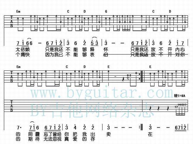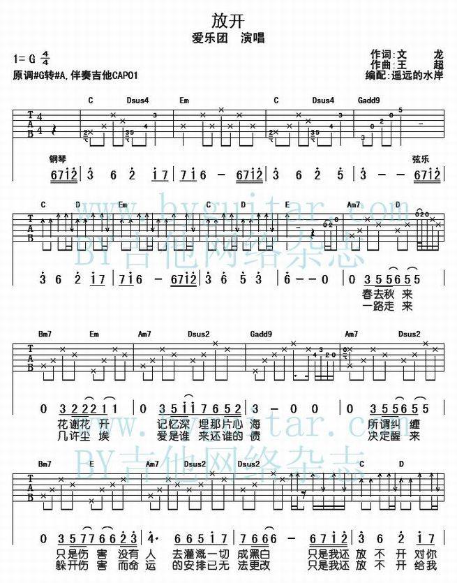 放开-新谱三团(吉他谱 吉他曲谱 吉他六线谱 吉他歌谱 吉它谱 影视吉他谱)