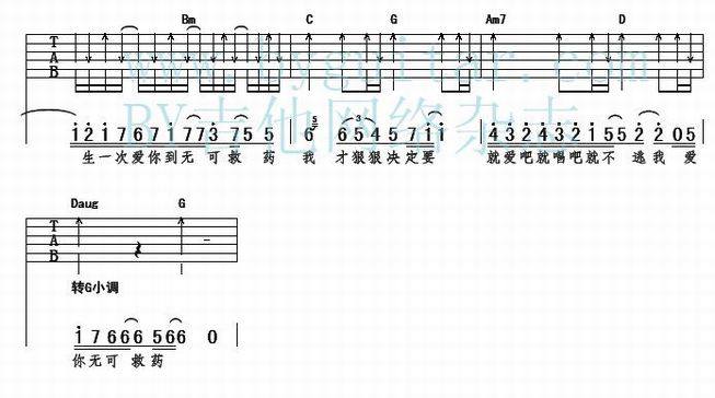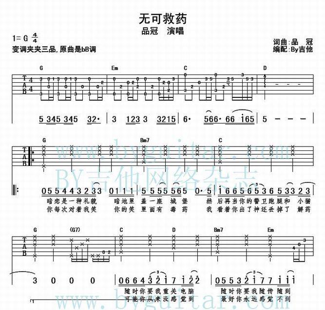 无可救药-品冠(吉他谱 吉他曲谱 吉他六线谱 吉他歌谱 吉它谱 影视吉他谱)