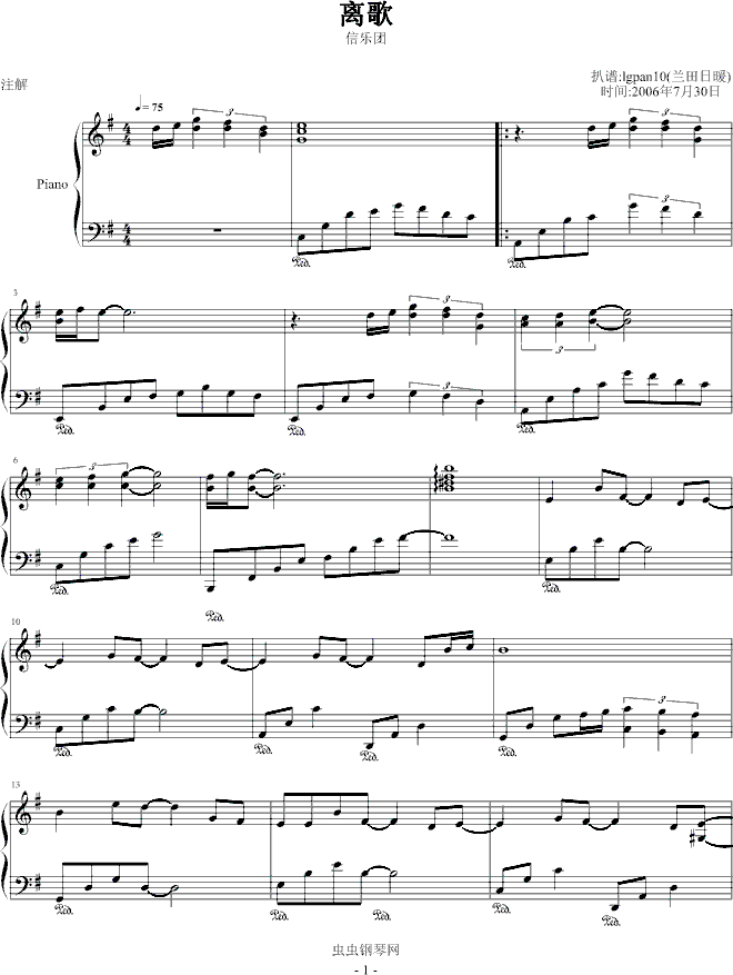 离歌-信乐团(线谱 五线谱 钢琴五线谱 钢琴弹唱谱 ove格式钢琴谱)