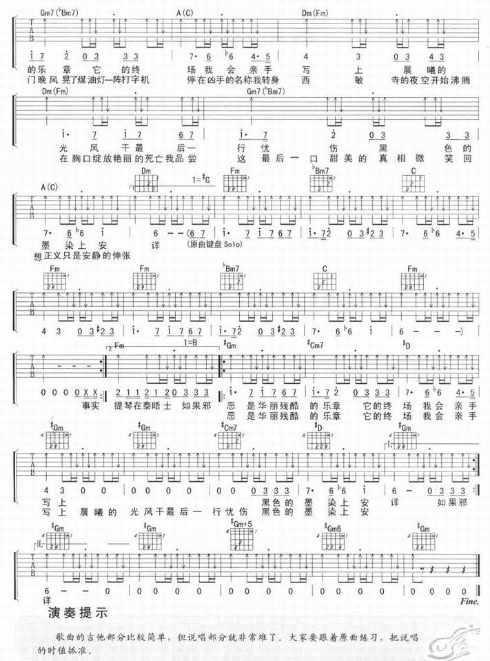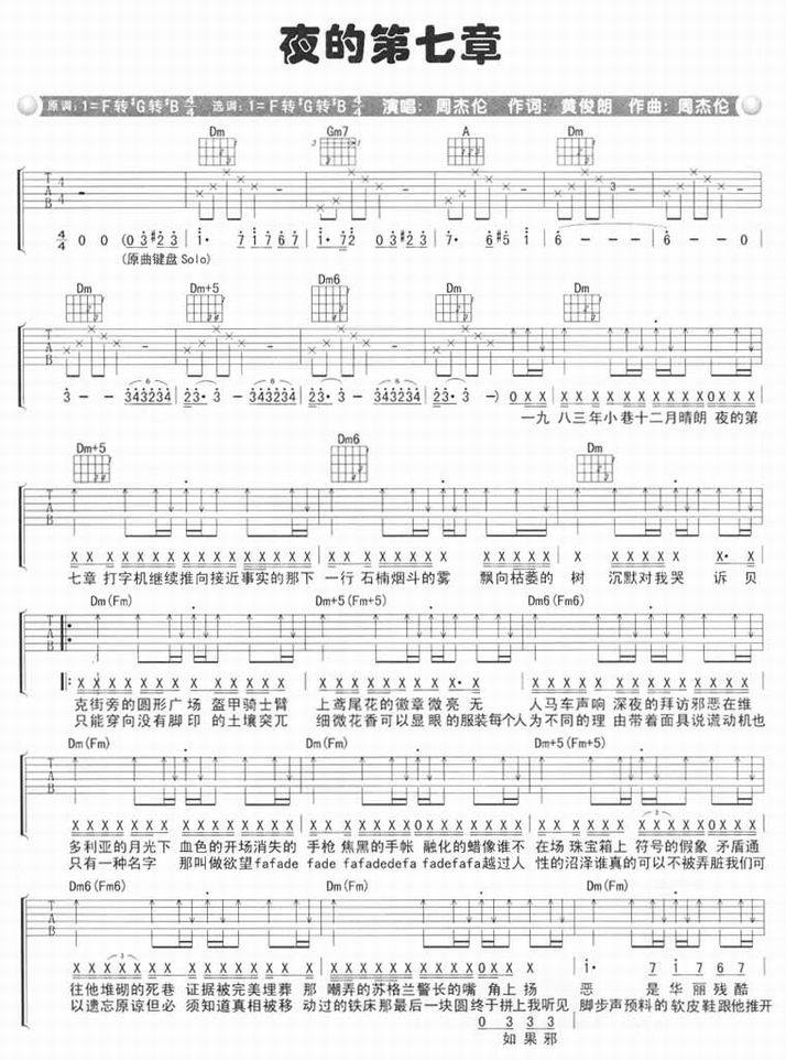夜的第七章-周杰伦(吉他谱 吉他曲谱 吉他六线谱 吉他歌谱 吉它谱 影视吉他谱)