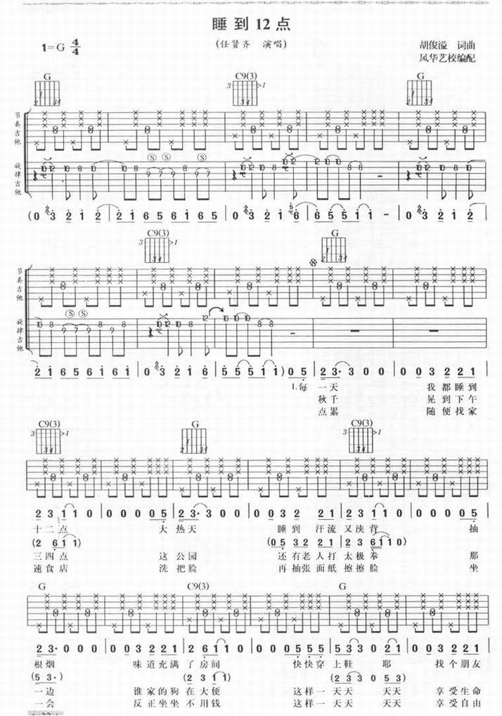 睡到12点-任贤齐(吉他谱 吉他曲谱 吉他六线谱 吉他歌谱 吉它谱 影视吉他谱)