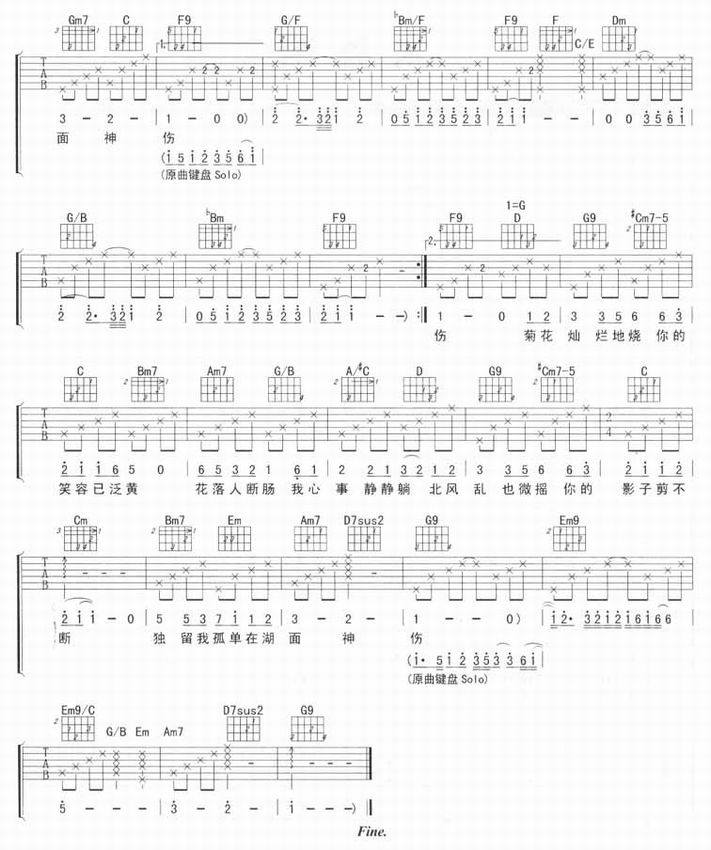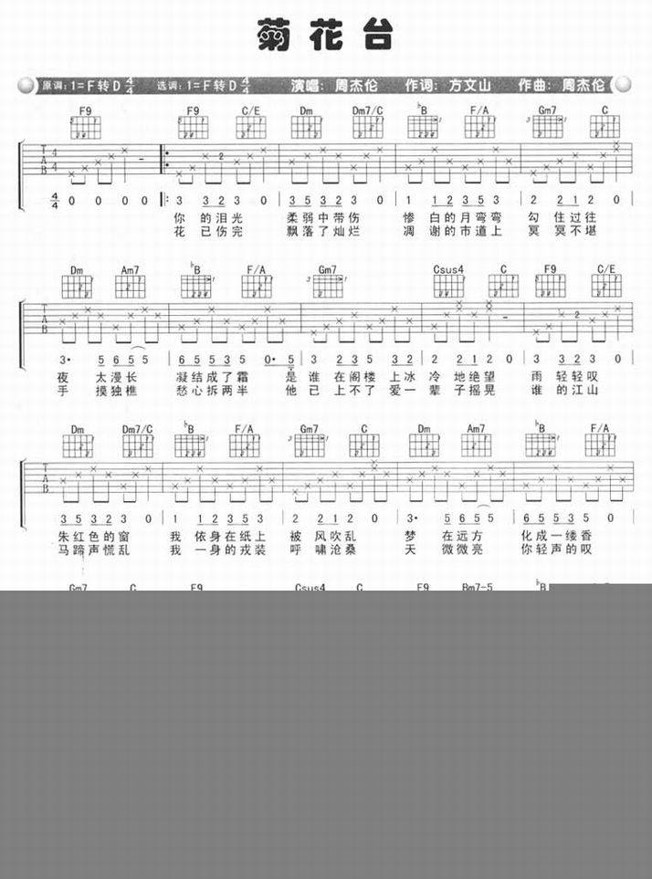 菊花台-周杰伦(吉他谱 吉他曲谱 吉他六线谱 吉他歌谱 吉它谱 影视吉他谱)