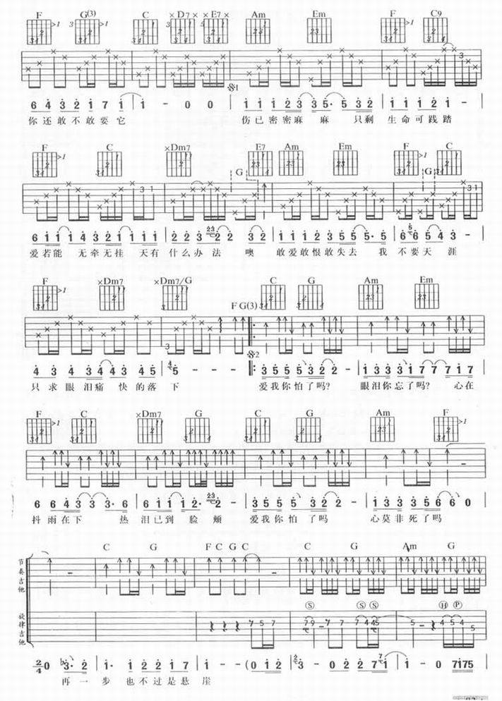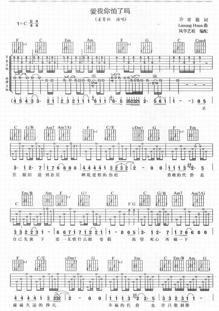 爱我你怕了吗-姜育恒(吉他谱 吉他曲谱 吉他六线谱 吉他歌谱 吉它谱 影视吉他谱)