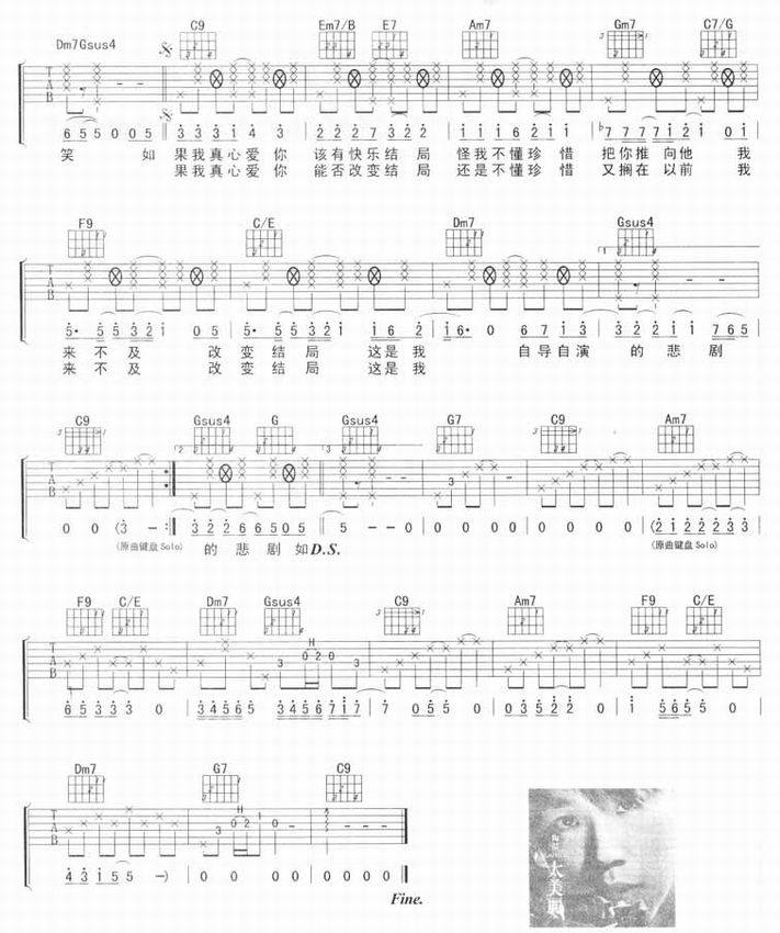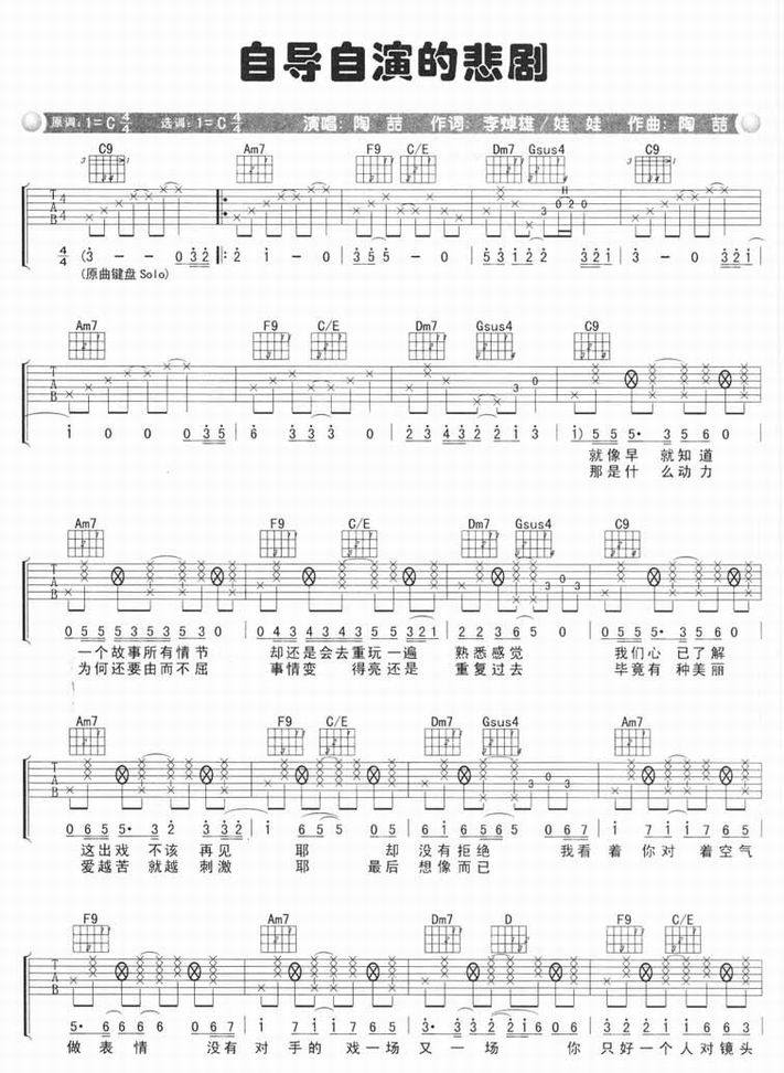 自导自演的悲剧-陶喆(吉他谱 吉他曲谱 吉他六线谱 吉他歌谱 吉它谱 影视吉他谱)