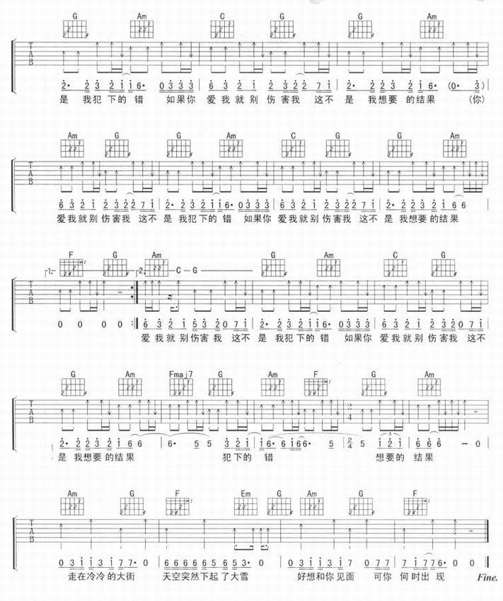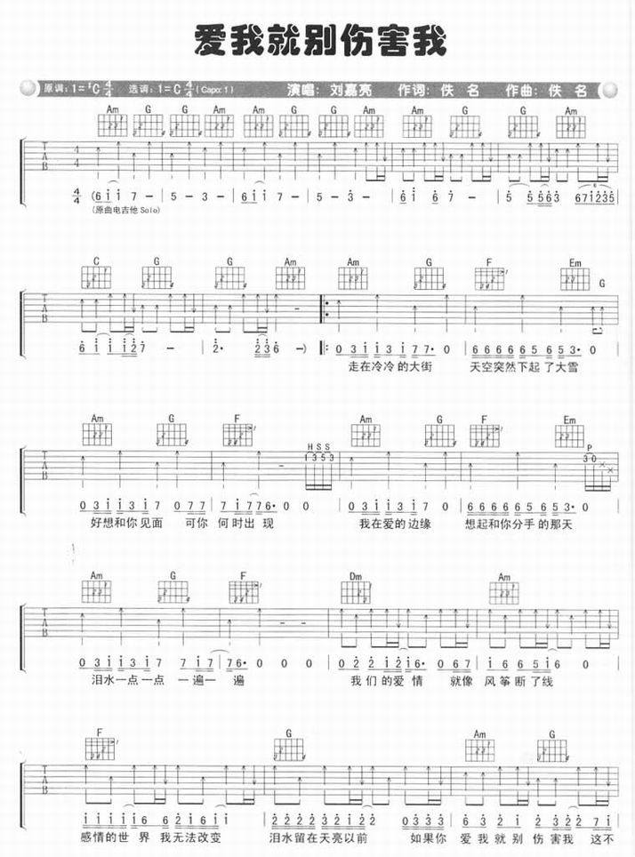 爱我就别伤害我-刘嘉亮(吉他谱 吉他曲谱 吉他六线谱 吉他歌谱 吉它谱 影视吉他谱)