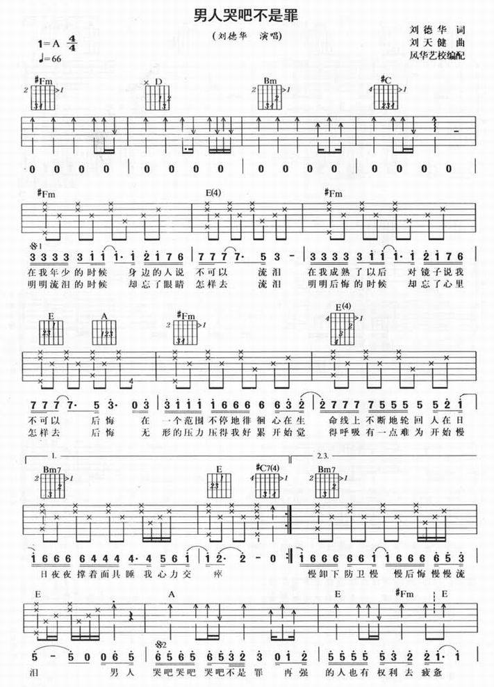 男人哭吧不是罪-刘德华(吉他谱 吉他曲谱 吉他六线谱 吉他歌谱 吉它谱 影视吉他谱)