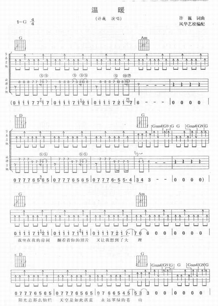 温暖-许巍(吉他谱 吉他曲谱 吉他六线谱 吉他歌谱 吉它谱 影视吉他谱)