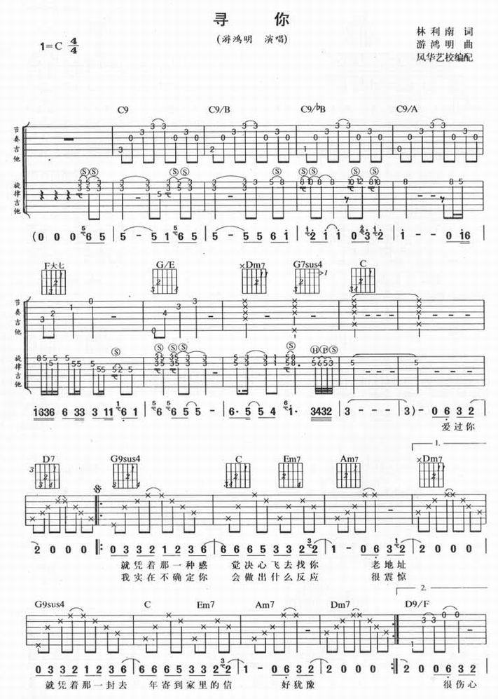 寻你-游鸿明(吉他谱 吉他曲谱 吉他六线谱 吉他歌谱 吉它谱 影视吉他谱)