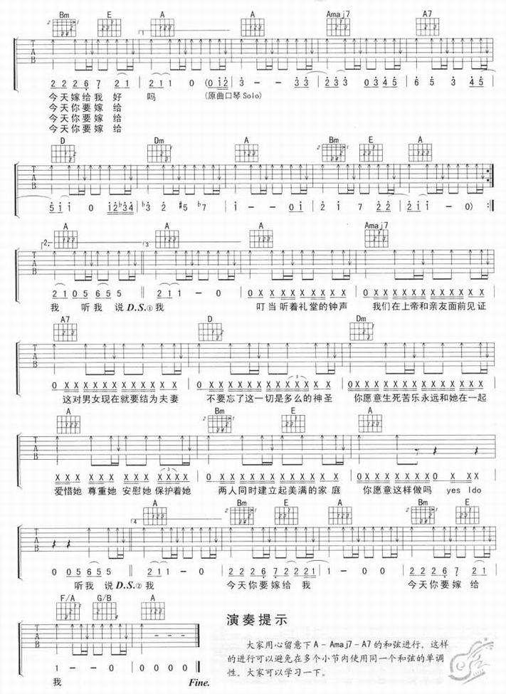 今天你要嫁给我-陶喆 蔡依琳(吉他谱 吉他曲谱 吉他六线谱 吉他歌谱 吉它谱 影视吉他谱)