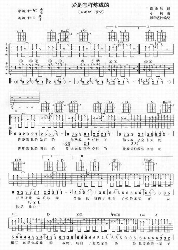 爱是怎样炼成的-谢雨欣(吉他谱 吉他曲谱 吉他六线谱 吉他歌谱 吉它谱 影视吉他谱)