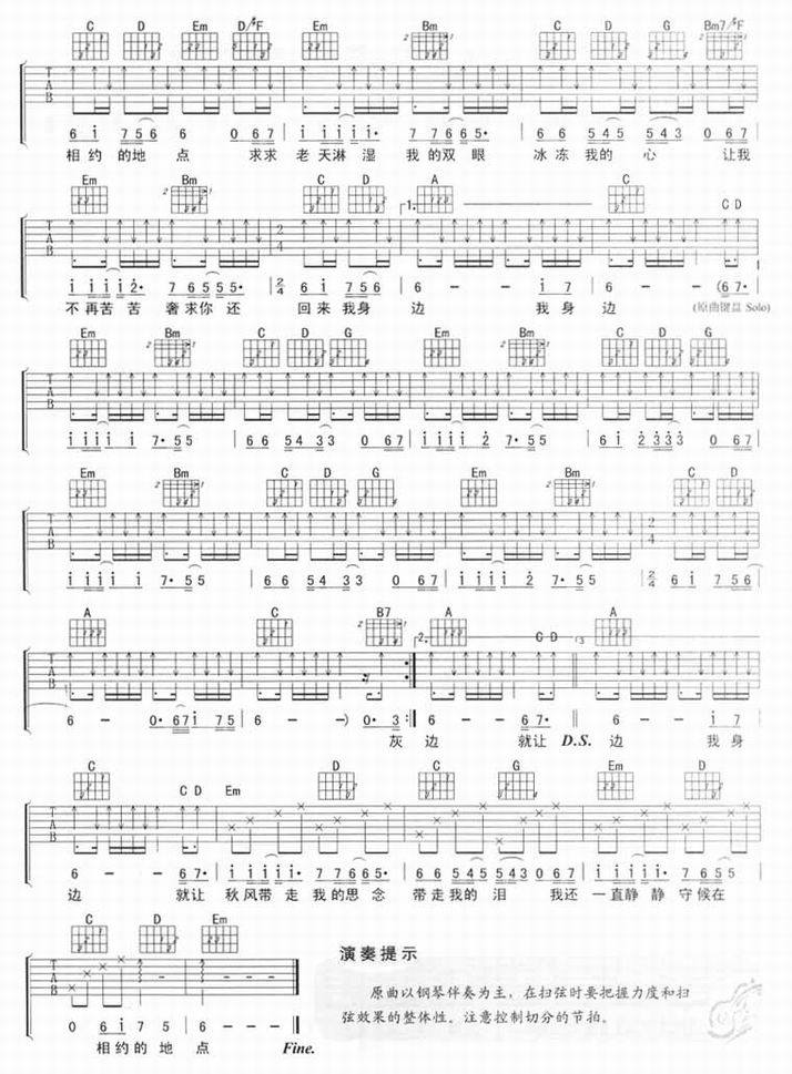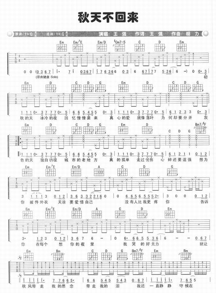 秋天不回来-王强(吉他谱 吉他曲谱 吉他六线谱 吉他歌谱 吉它谱 影视吉他谱)