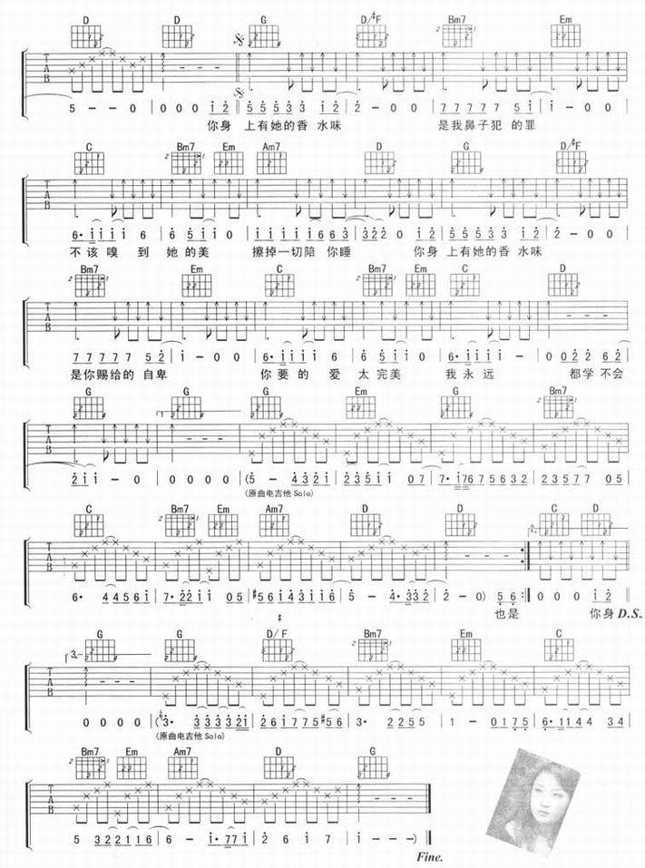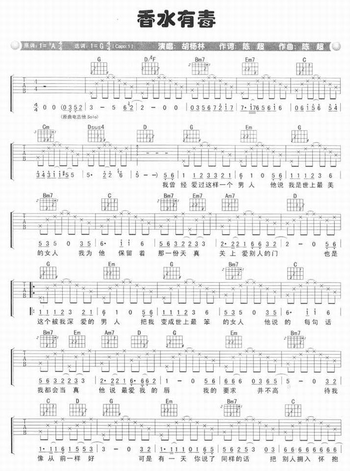 香水有毒-胡杨林(吉他谱 吉他曲谱 吉他六线谱 吉他歌谱 吉它谱 影视吉他谱)