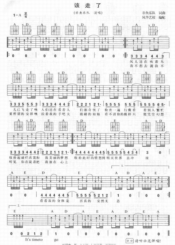 该走了-非鱼乐队(吉他谱 吉他曲谱 吉他六线谱 吉他歌谱 吉它谱 影视吉他谱)