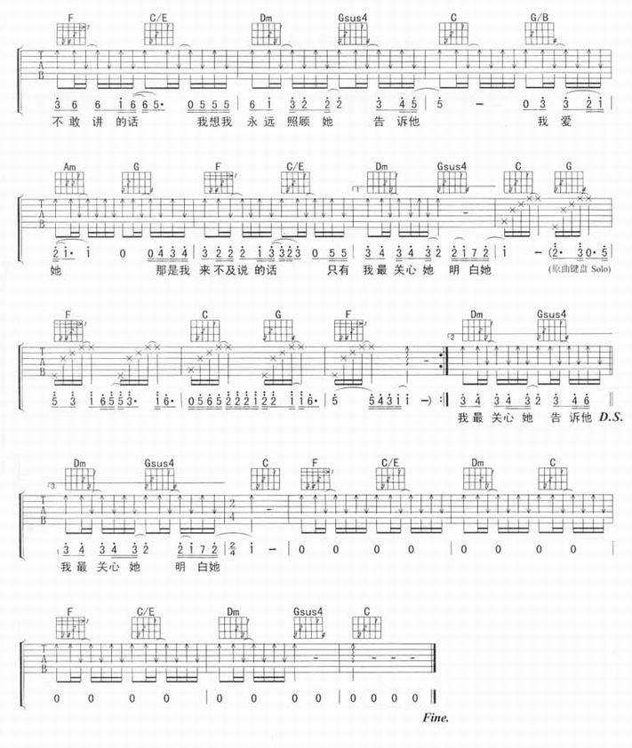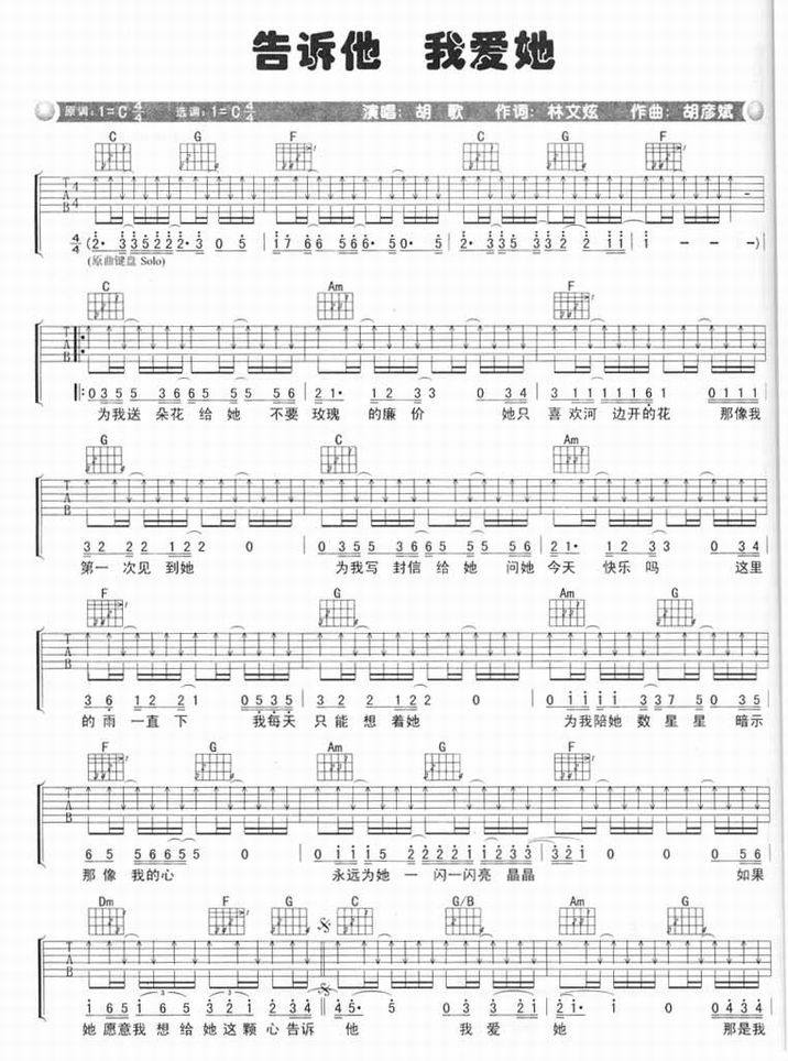告诉他 我爱她-胡歌(吉他谱 吉他曲谱 吉他六线谱 吉他歌谱 吉它谱 影视吉他谱)