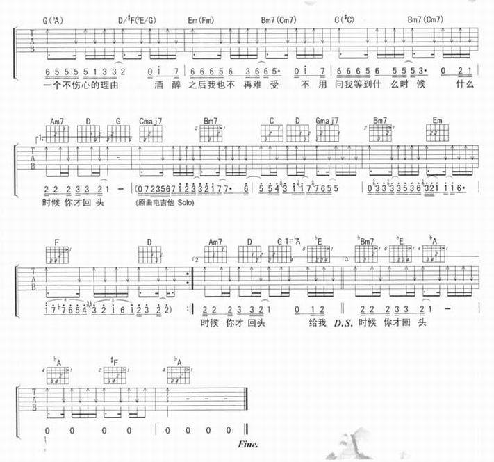 给我一个不伤心的理由-胡力(吉他谱 吉他曲谱 吉他六线谱 吉他歌谱 吉它谱 影视吉他谱)