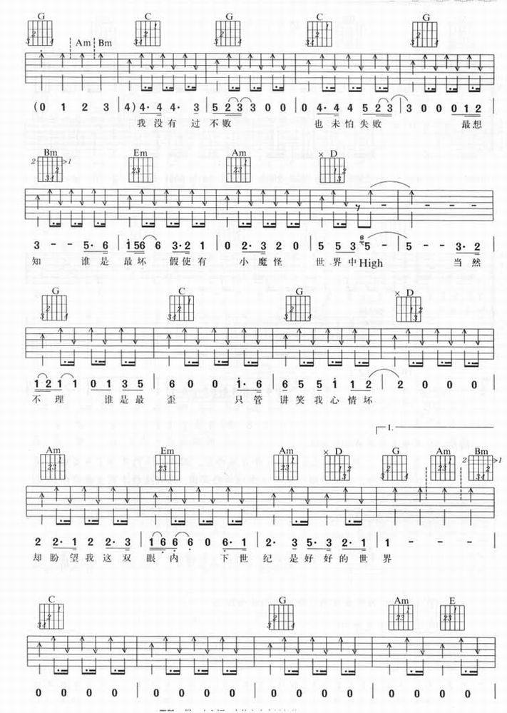 好好世界-谢霆锋(吉他谱 吉他曲谱 吉他六线谱 吉他歌谱 吉它谱 影视吉他谱)
