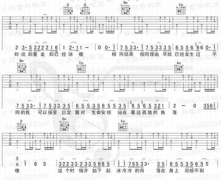冰雨-伍佰(吉他谱 吉他曲谱 吉他六线谱 吉他歌谱 吉它谱 影视吉他谱)
