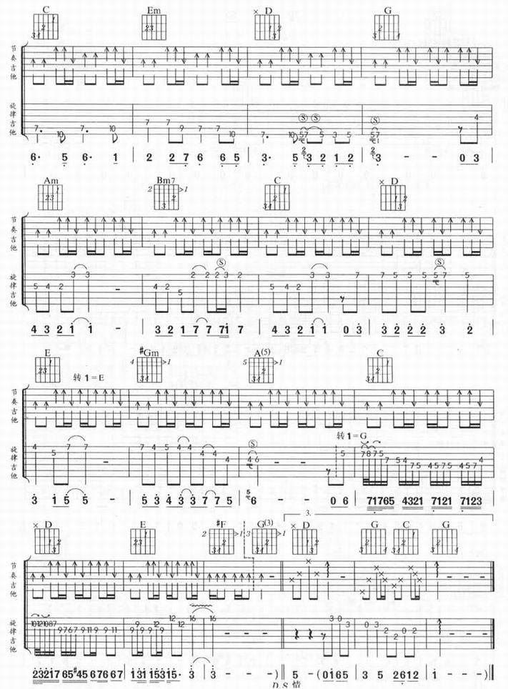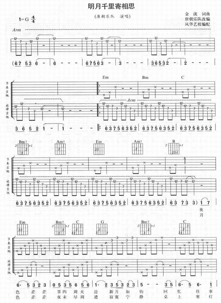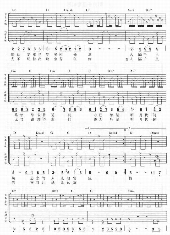 明月千里寄相思-唐朝乐队(吉他谱 吉他曲谱 吉他六线谱 吉他歌谱 吉它谱 影视吉他谱)