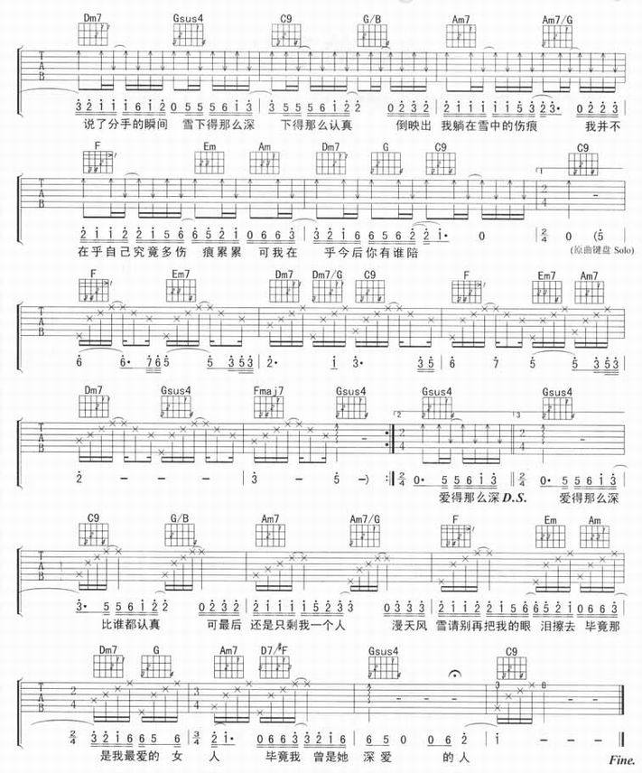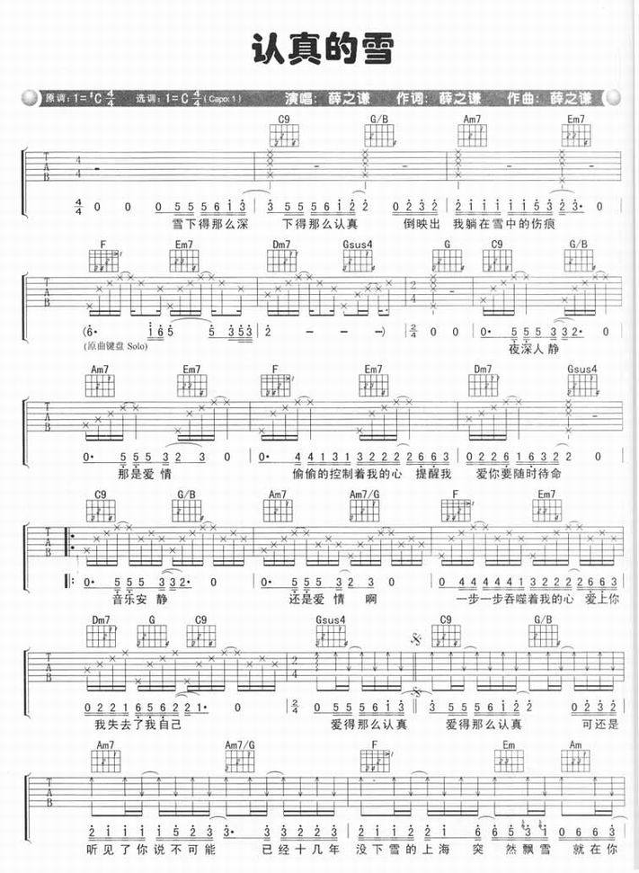 认真的雪-薛之谦(吉他谱 吉他曲谱 吉他六线谱 吉他歌谱 吉它谱 影视吉他谱)