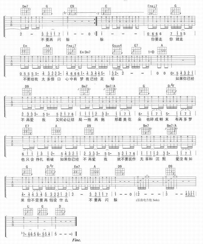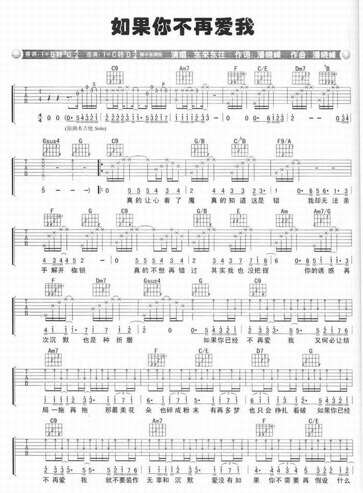 如果你不再爱我-东来东往(吉他谱 吉他曲谱 吉他六线谱 吉他歌谱 吉它谱 影视吉他谱)