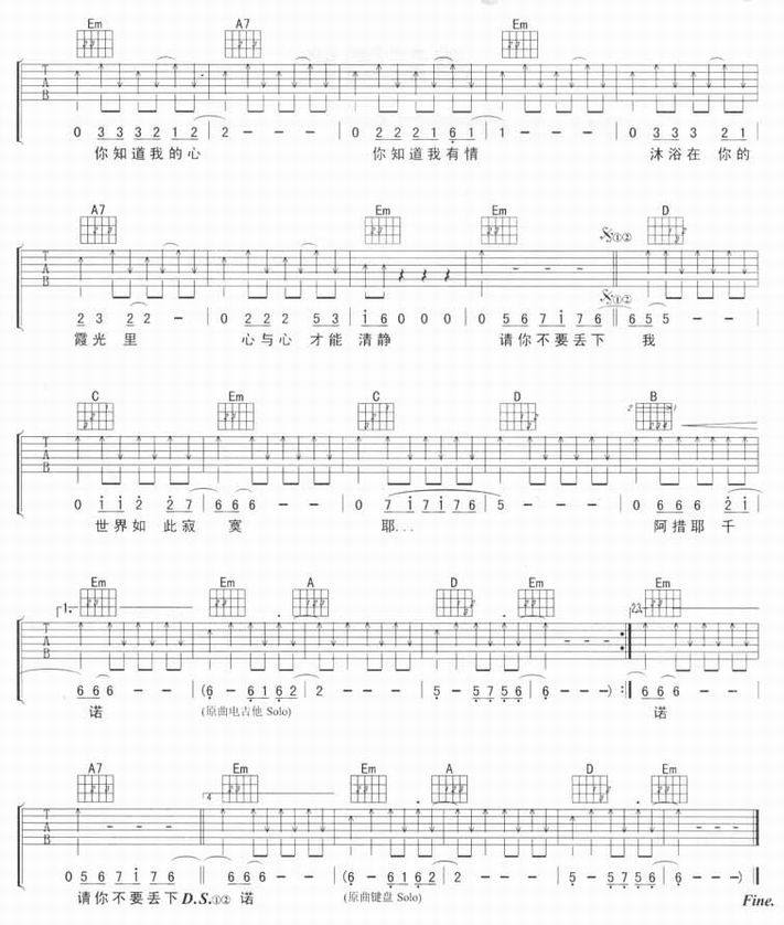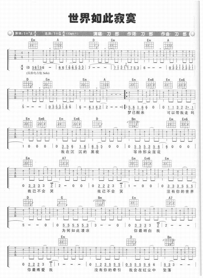 世界如此寂寞-刀郎(吉他谱 吉他曲谱 吉他六线谱 吉他歌谱 吉它谱 影视吉他谱)