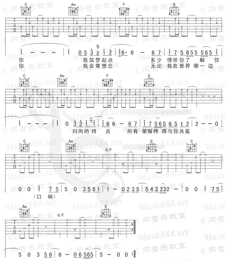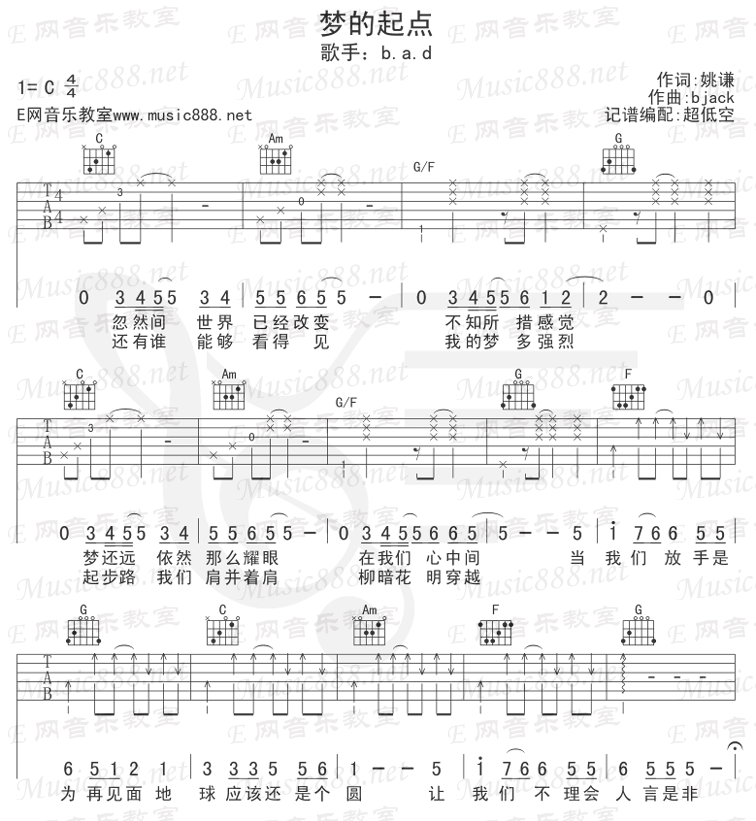 梦的起点-b.a.d(吉他谱 吉他曲谱 吉他六线谱 吉他歌谱 吉它谱 影视吉他谱)