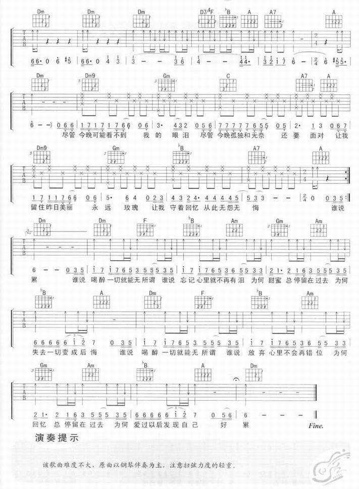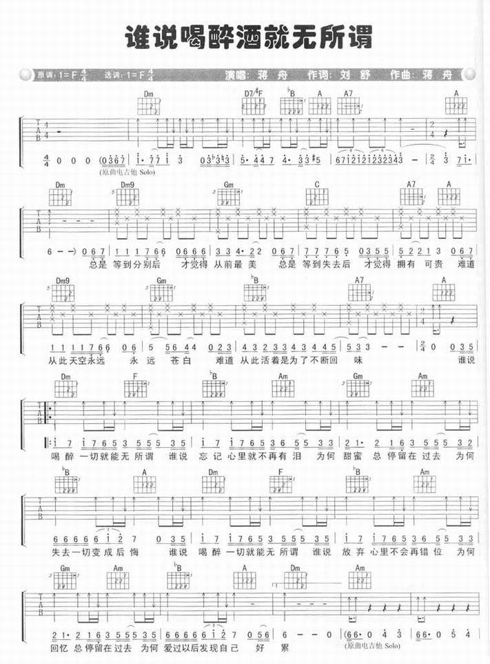谁说喝醉就无所谓-蒋舟(吉他谱 吉他曲谱 吉他六线谱 吉他歌谱 吉它谱 影视吉他谱)