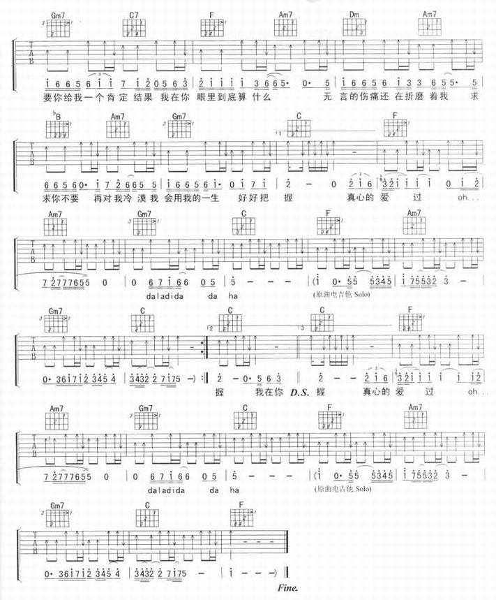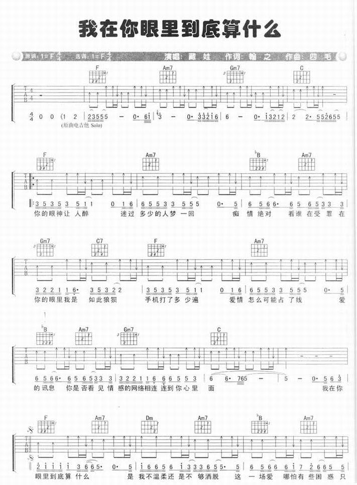 我在你眼里到底算什么-藏娃(吉他谱 吉他曲谱 吉他六线谱 吉他歌谱 吉它谱 影视吉他谱)