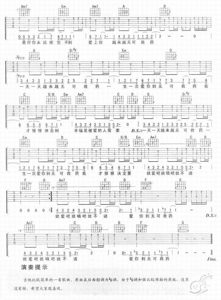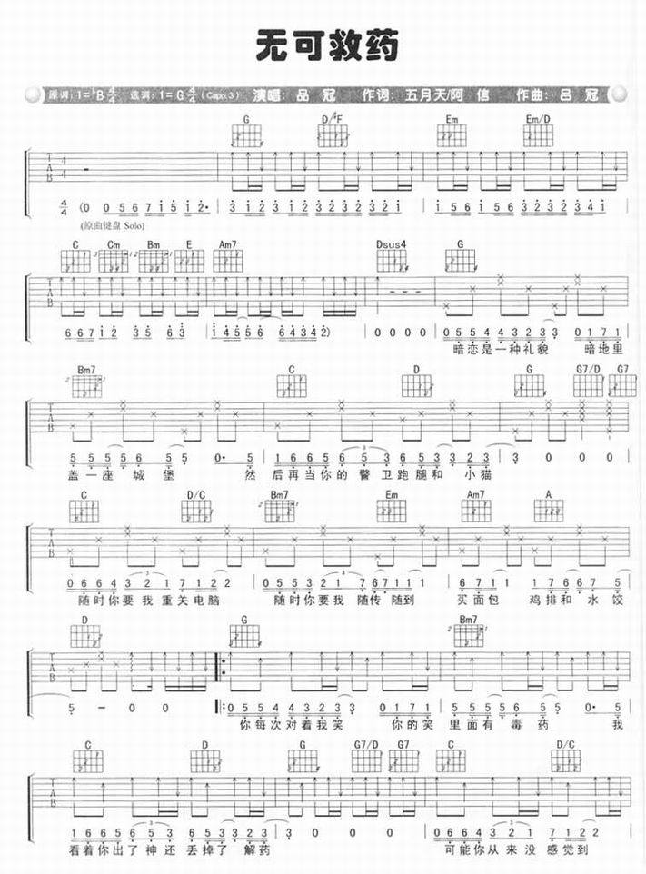 无可救药-品冠(吉他谱 吉他曲谱 吉他六线谱 吉他歌谱 吉它谱 影视吉他谱)
