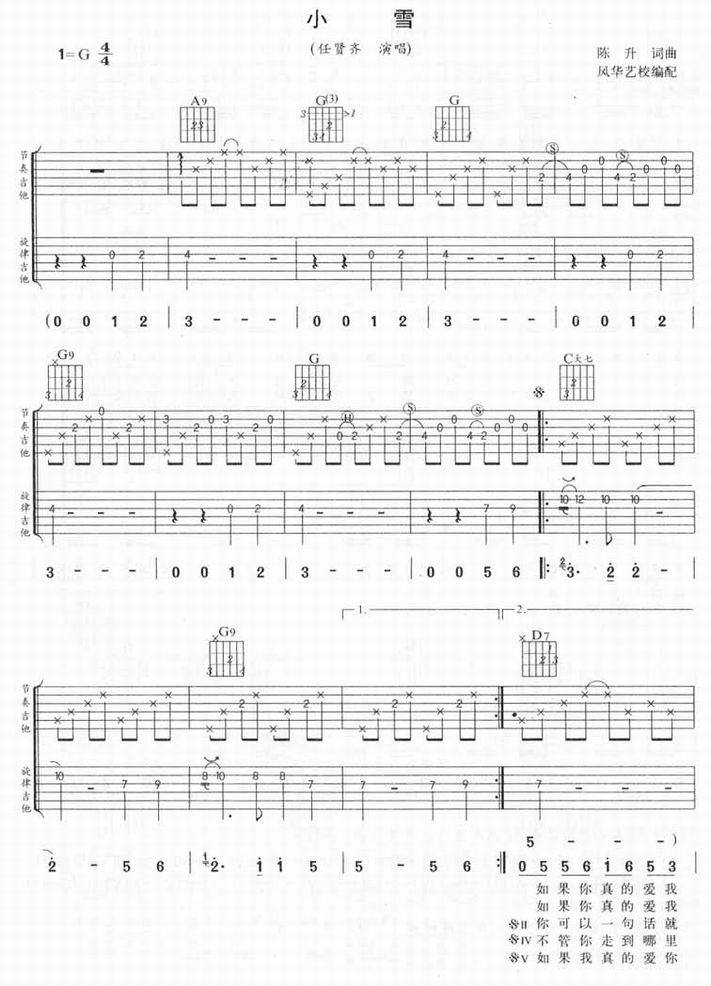 小雪-任贤齐(吉他谱 吉他曲谱 吉他六线谱 吉他歌谱 吉它谱 影视吉他谱)