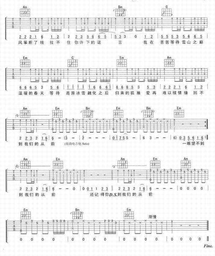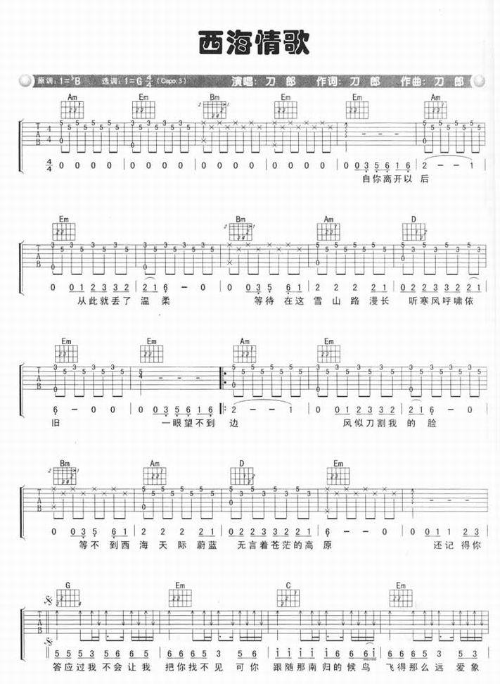 西海情歌-刀郎(吉他谱 吉他曲谱 吉他六线谱 吉他歌谱 吉它谱 影视吉他谱)
