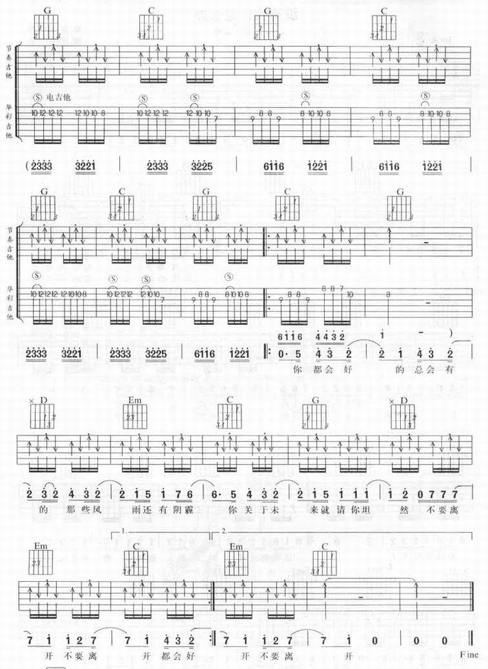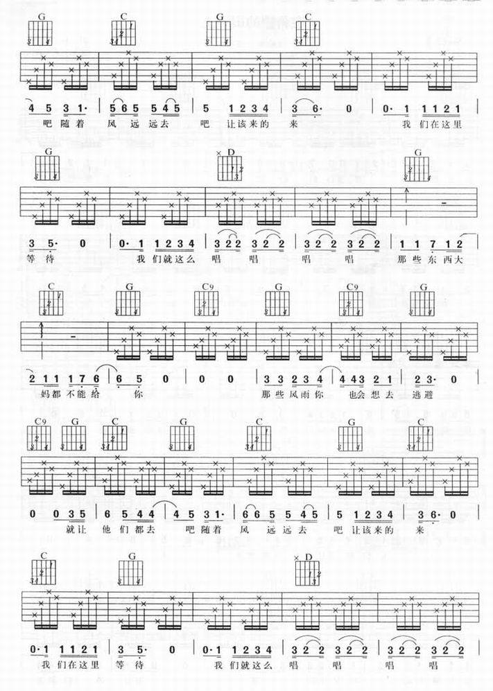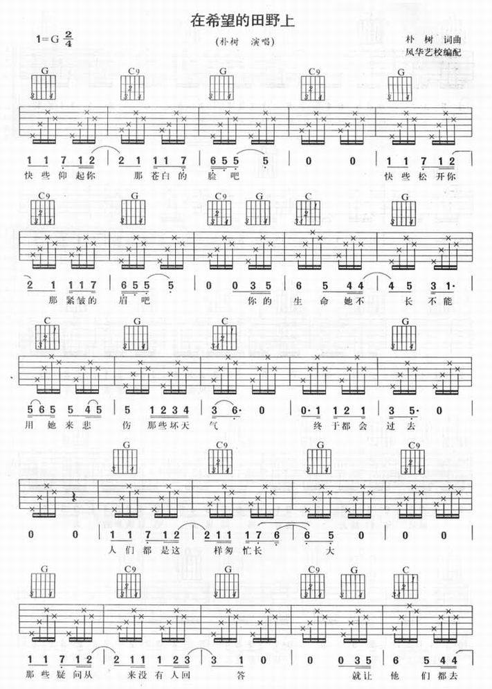 在希望的田野上-朴树(吉他谱 吉他曲谱 吉他六线谱 吉他歌谱 吉它谱 影视吉他谱)